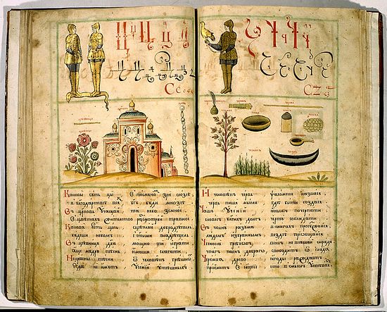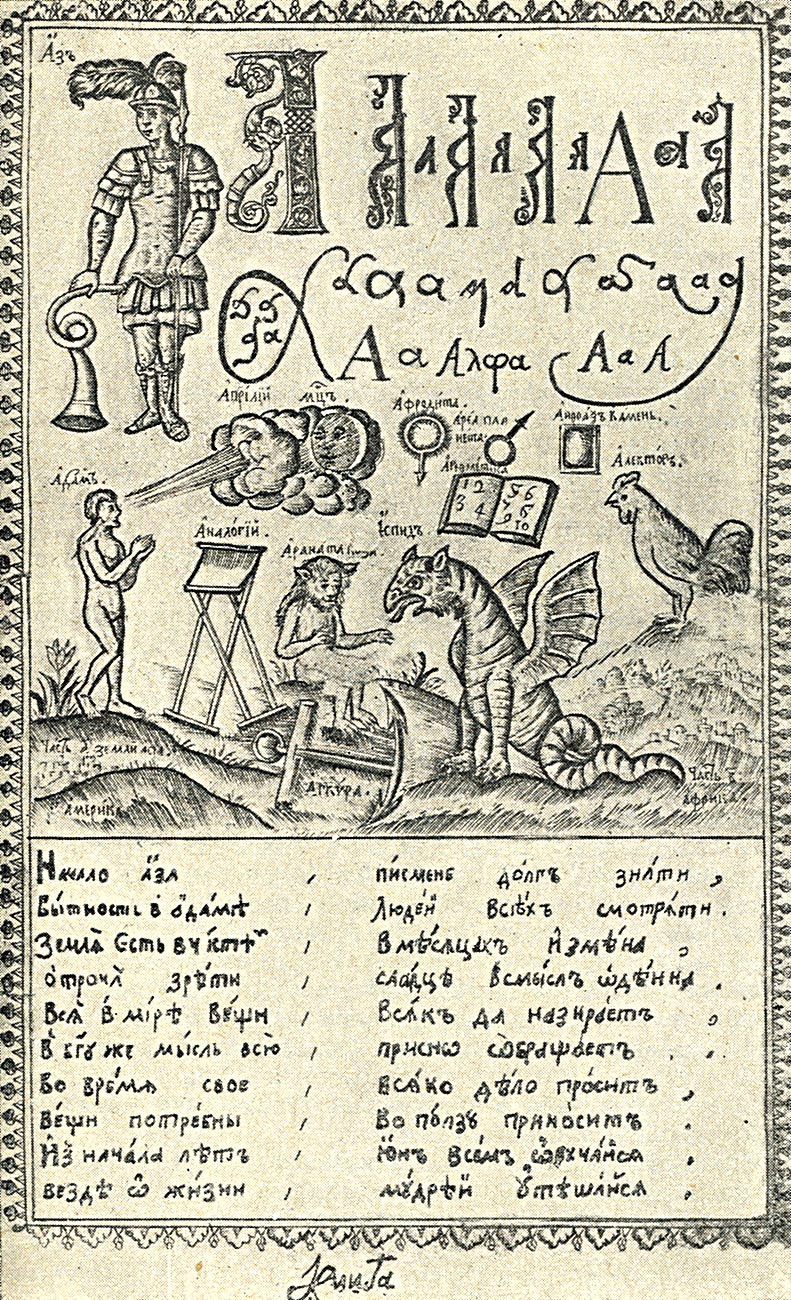 Да, а одна самая настоящая детская книжка с картинками в Древней Руси, в конце концов, появилась. В 1693 году Карион Истомин преподнёс сёстрам Петра I иллюстрированный букварь.